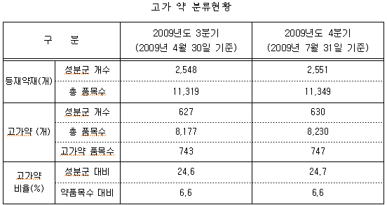 ÃÖ±Ù °Ç°º¸Çè½É»çÆò°¡¿ø ½É»ç2ºÎ´Â ¡®09³â 4ºÐ±â ¾àÁ¦±Þ¿© ÀûÁ¤¼ºÆò°¡ ½Ã Àû¿ëÇÏ´Â °í°¡¾à ºÐ·ù±âÁØ ¹× °í°¡¾à ¸ñ·ÏÀ» ȨÆäÀÌÁö¿¡ °ø°³Çß´Ù.