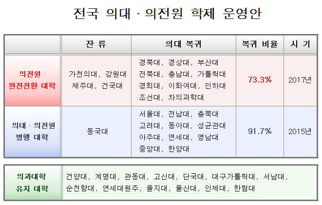 ÀÇÀü¿ø üÁ¦¸¦ À¯ÁöÇÏ´Â °¡ÃµÀÇ´ë, °¿ø´ë, °Ç±¹´ë, µ¿±¹´ë, Á¦ÁÖ´ë µî 5°³ ´ëÇÐÀº ¾ÕÀ¸·Î ±³°úºÎÀÇ ÀüÆøÀûÀÎ Áö¿øÀ» ¹ÞÀ» Àü¸ÁÀÌ´Ù.