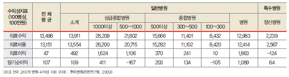 ÀÇ·á¼öÀÍ¿¡¼ ÀΰǺñ¡¤°ü¸®ºñ µîÀÇ ºñ¿ëÀ» »« ÀÇ·áÀÌÀÍÀº Àüü Æò±Õ 4¾ï 7000¸¸¿ø¼±À¸·Î, À̸¦ ´Ù½Ã ¹ýÀμ¼ µîÀÇ ºñ¿ëÀ» Â÷°¨ÇÏ¸é ´ç±â¼øÀÌÀÍÀº 1¾ï¿ø ¼öÁØ¿¡ ºÒ°úÇß´Ù. Áï, 100º´»óÀ» ±âÁØÀ¸·Î Àü±¹ 240°³ º´¿øÀÌ ½ÇÁ¦·Î ¼Õ¿¡ °Å¸ÓÁã´Â µ·Àº ¿¬°£ 1¾ï¿ø ²ÃÀ̶ó´Â ¼³¸íÀÌ´Ù. °á±¹ ÀÌµé º´¿øÀº Áö³ 2009³â ÃÑÀÚº»¼øÀÌÀÍ·ü 1.2%, ÀÇ·á¼öÀͼøÀÌÀÍ·ü 0.6%¸¦ °ÅµÎ´Âµ¥ ±×Ä¡¸é¼ ÃʶóÇÑ ¼ºÀûÇ¥¸¦ ¹Þ¾Æ µé ¼ö¹Û¿¡ ¾ø¾ú´Ù.