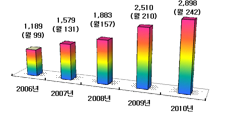 Àüü ÀÌÀǽÅû Á¦±â °Ç¼ö´Â 2007³â 1579°Ç, 2008³â 1883°Ç, 2009³â 2510°Ç, 2010³â 2898°ÇÀ¸·Î Áö¼ÓÀûÀÎ Áõ°¡¼¼¸¦ º¸À̰í ÀÖ´Ù.
