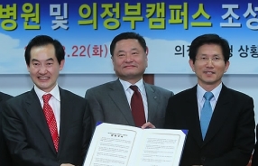 À»Áö´ë(ÃÑÀå ¹ÚÁØ¿µ)¿Í ÀÇÁ¤ºÎ½Ã(½ÃÀå ¾Èº´¿ë), °æ±âµµ(µµÁö»ç ±è¹®¼ö)°¡ 22ÀÏ ÀÇÁ¤ºÎ Ä·ÇÁ ¿¡¼¼ÀÌ¿æ ºÎÁö¿¡ ´ëÇк´¿ø°ú Ä·ÆÛ½º Á¶¼ºÀ» À§ÇÑ ¾çÇØ°¢¼(MOU)¸¦ ü°áÇß´Ù.