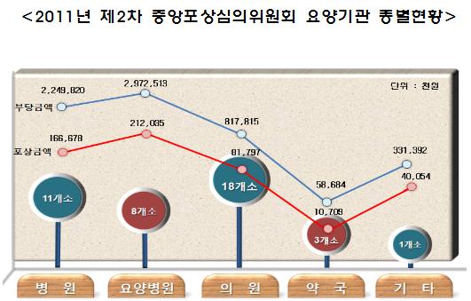 ±¹¹Î°Ç°º¸Çè°ø´Ü(ÀÌ»çÀå Á¤Çü±Ù)Àº 30ÀÏ '2011³â Á¦2Â÷ Áß¾ÓÆ÷»ó½ÉÀÇÀ§¿øÈ¸'¸¦ ¿°í Áø·áºñ 64¾ï3022¸¸¿øÀ» ÇãÀ§¡¤ºÎ´çÇÏ°Ô Ã»±¸ÇÑ ¿ä¾ç±â°üÀ» ½Å°íÇÑ 36¸íÀÇ ¿ä¾ç±â°ü ³»ºÎÁ¾»çÀÚ ¹× ½Å°íÀο¡°Ô ÃÑ5¾ï1127¸¸¿øÀÇ Æ÷»ó±ÝÀ» Áö±ÞŰ·Î ÃÖÁ¾ °áÁ¤Çß´Ù.