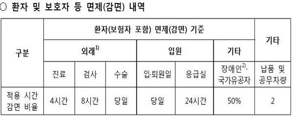 ¿©±â¿¡ ÀÔ¡¤Åð¿øÀº ´çÀÏ, ÀÀ±Þ½ÇÀº 24½Ã°£¿¡ ÇÑÇØ ÁÖÂ÷·á¸¦ ¹ÞÁö ¾Ê±â·Î ÇßÀ¸¸ç Àå¾ÖÀÎ ¹× ±¹°¡À¯°øÀÚÀÇ °æ¿ì 50%¸¦ °¨¸éÇØÁØ´Ù.
