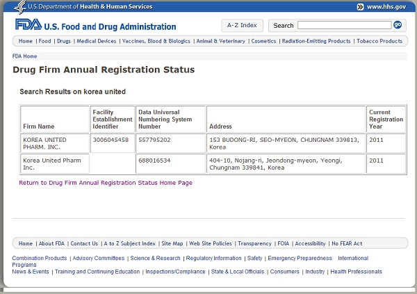Çѱ¹À¯³ªÀÌÆ¼µåÁ¦¾à(´ëÇ¥ °´ö¿µ)ÀÇ ±¹³» °øÀåÀÌ ÃÖ±Ù ¹Ì±¹ FDA(Food and Drug Administration)¿¡ µî·ÏµÆ´Ù.