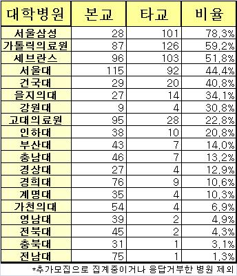 ¹Ý¸é Àü³²´ëº´¿ø, ÃæºÏ´ëº´¿ø, ÀüºÏ´ëº´¿ø µî °¢ Áö¿ªÀ» ´ëÇ¥ÇÏ´Â ´ëÇк´¿øµéÀº ¿©ÀüÈ÷ º»±³ Ãâ½Å ·¹Áö´øÆ® ºñÀ²ÀÌ 90%¸¦ »óȸÇß´Ù.