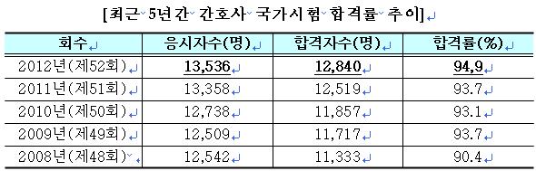 Á¦52ȸ °£È£»ç ±¹°¡½ÃÇè¿¡¼ ÀÀ½ÃÇÑ 1¸¸3536¸í Áß 1¸¸2840¸íÀÌ ÇÕ°ÝÇß´Ù. Á¶»ê»ç´Â 18¸íÀÌ ÀÀ½ÃÇØ ¸ðµÎ ÇÕ°ÝÇß´Ù.