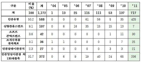 º¸°íµÈ ǰ¸ñµµ 2009³â 21°³, 2010³â 39°³¿¡¼ Áö³ÇØ 105°³·Î Å©°Ô ´Ã¾î Áúº´Ä¡·á»Ó¸¸ ¾Æ´Ï¶ó ¹Ì¿ë µîÀÇ ¸ñÀûÀ¸·Î ÀÇ·á±â±â¸¦ »ç¿ëÇÏ´Â ¼ÒºñÀÚ°¡ ´Ã°í ÀÖ´Â °ÍÀ¸·Î ÆÄ¾ÇµÆ´Ù.