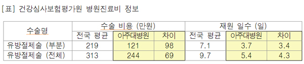 À¯¹æºÎºÐÀýÁ¦¼úÀÇ °æ¿ì Àü±¹ Æò±Õ ¼ö¼úºñ¿ëÀÌ 219¸¸¿ø, Àç¿øÀϼö´Â 7.1ÀÏÀε¥ ¹ÝÇØ ¾ÆÁִ뺴¿øÀº ¼ö¼úºñ¿ëÀÌ 98¸¸¿øÀÌ ÀûÀº 121¸¸¿ø, Àç¿øÀϼö´Â 3.4ÀÏÀÌ ÀûÀº 3.7ÀÏÀ̾ú´Ù.