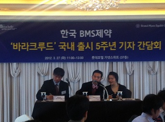 BMS ¸ÞµðÄà ´ã´ç ±è¸íÈÆ »ó¹«´Â ¡°¹Ù¶óÅ©·çµå°¡ 2007³â 1¿ù Çѱ¹¿¡¼ Ãâ½ÃµÈ ÀÌÈÄ ¸¹Àº ±¹³» BÇü°£¿° ȯÀڵ鿡°Ô 1, 2Â÷ Ä¡·áÁ¦·Î ó¹æµÇ°í ÀÖ´Ù¡±¸ç ¡°±¹³»¿Ü ¿©·¯ ÀÓ»ó½ÃÇè °á°ú¸¦ ÅëÇØ ¹Ù¶óÅ©·çµåÀÇ ¶Ù¾î³ È¿´É°ú ¾ÈÀü¼ºÀ» È®ÀÎÇß´Ù¡±°í °Á¶Çß´Ù.