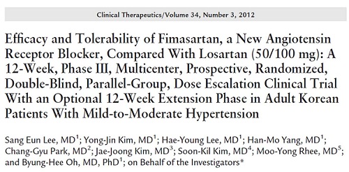 ÀÌ ½ÃÇèÀº 18¼¼¿¡¼ 70¼¼±îÁö Çѱ¹ÀÇ °æ, ÁßÁõµµ °íÇ÷¾Ð ȯÀÚ 506¸íÀ» ´ë»óÀ¸·Î(ÇǸ¶»ìź : 256¸í, ·Î»ìź : 250¸í) ÇǸ¶»ìź(Fimasartan)60mg°ú ·Î»ìź (Losartan) 50mgÀ» ¹«ÀÛÀ§ ¹èÁ¤ÇØ 12ÁÖ°£ ÁøÇàµÆ´Ù.