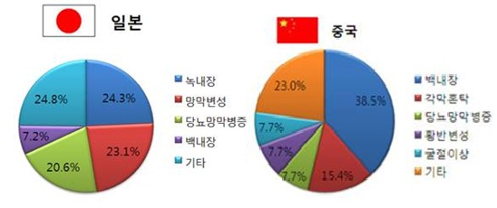 ¾Æ½Ã¾Æ ´ëÇ¥ ¼±Áø±¹À¸·Î ºÐ·ùµÇ´Â ÀϺ»ÀÇ °æ¿ì ³ì³»ÀåÀ» ºñ·ÔÇØ ¸Á¸·º¯¼º, ´ç´¢¸Á¸·º´Áõ µî ¸Á¸·ÁúȯÀÌ Â÷ÁöÇÏ´Â ½Ç¸í ºñÀ²ÀÌ 68%¿¡ ´ÞÇß´Ù.