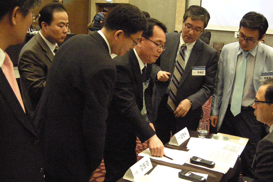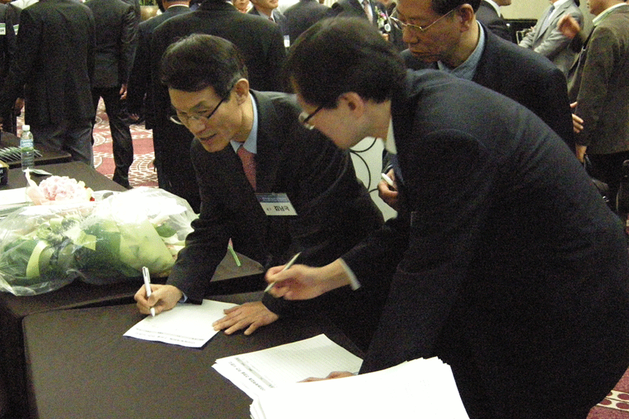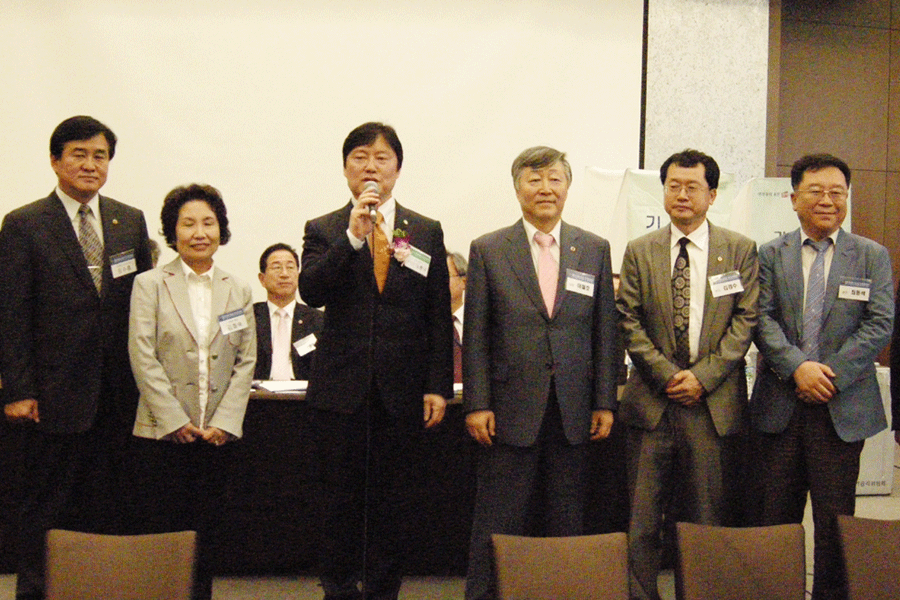 ¡ã³ëȯ±Ô ´ç¼±ÀÚ¿Í »õ·Î ¼±ÀÓµÈ ºÎȸÀåµéÀÌ Àλ縦 Çϰí ÀÖ´Ù. ±è¼ºÈÆ, ÀÓ¼öÈì, ±èȼ÷, ÀÌöȣ, ±è°æ¼ö, ÃÖµ¿¼®, À±Ã¢°â µî 7ÀÎÀÌ ´ç¼±µÆ´Ù. |