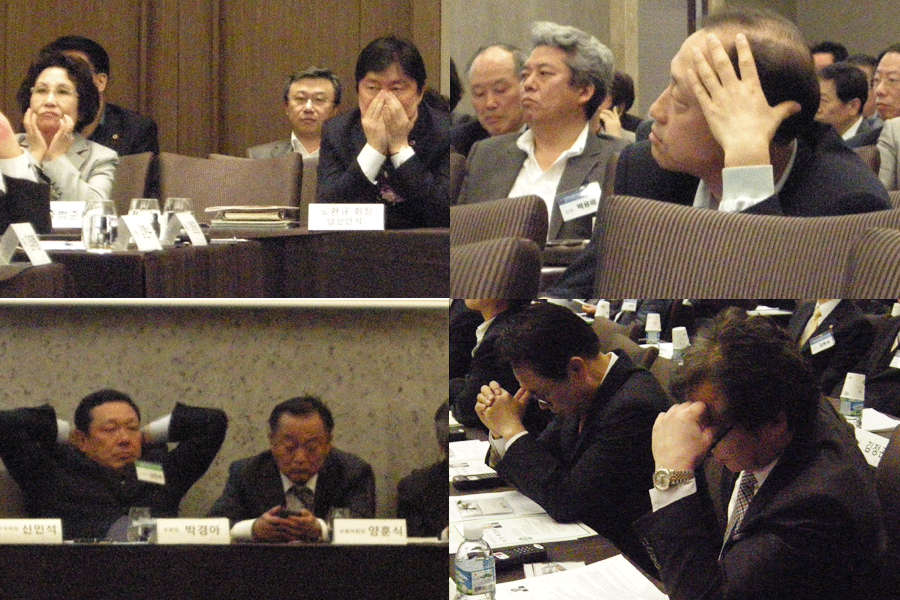¡ã10½Ã°£ÀÌ ³Ñ´Â ¸¶¶óÅæ ȸÀÇ¿¡ ÀÓ¿ø ¹× ´ëÀÇ¿øµéÀÌ ¸ðµÎ ÁöÃİ¡°í ÀÖ´Ù. À̳¯ ȸÀÇ´Â ¿ÀÀü 9½ÃºÎÅÍ ¿ÀÈÄ 5½Ã ¹Ý±îÁö ¿¹Á¤µÅ ÀÖ¾úÀ¸³ª ¿ÀÈÄ 8½Ã°¡ ³Ñ¾î¼¾ß ³¡³µ´Ù. |