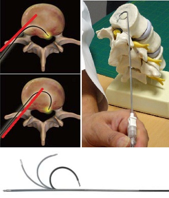 ¼öÇÙÅ»ÃâÁõ ¹× ¼¶À¯·ûÆÄ¿Áõ°ú °°Àº ôÃßµð½ºÅ© Ä¡·á¸¦ À§ÇÑ ½Ã¼úÀº ¸ñµð½ºÅ©¿Í ´Þ¸® Àå±â º¸È£¸¦ À§ÇØ µî ÂÊ¿¡¼ º´º¯¿¡ Á¢±ÙÇÏ´Â ¹æ½ÄÀ» ÃëÇÑ´Ù. Ä«Å×Å͸¦ º´º¯¿¡ Á¢±Ù½ÃÄÑ °íÁÖÆÄ Àü·ù¸¦ Ȱ¿ëÇØ ¿À» ¹ß»ý½Ã۰í, ÀÌ ¿·Î µ¹Ãâ ºÎÀ§¸¦ Å¿ö Ä¡·áÇÏ´Â °ÍÀÌ ÀϹÝÀûÀÎ Ä«Å×ÅÍ ½Ã¼úÀÌ´Ù.