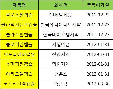 À̵é Áß ¡®Å¬·Î½º¿øÄ¸½¶(CJÁ¦ÀÏÁ¦´ç)¡¯°ú ¡®Å¬¶óºò½Åµà¿Àĸ½¶(Çѱ¹À¯³ªÀÌÆ¼µåÁ¦¾à)¡¯, ¡®Å¬¶ó½ºÇÉĸ½¶(Çѱ¹¹ÙÀÌ¿ÀÄÍÁ¦¾à)¡¯ÀÌ Áö³ÇØ 12¿ù 23ÀÏ °¡Àå ¸ÕÀú ǰ¸ñÇã°¡¸¦ ¹ÞÀ¸¸ç ¿Ã 2¿ùºÎÅÍ ¹ß¸Å°¡ ½ÃÀ۵ƴÙ.