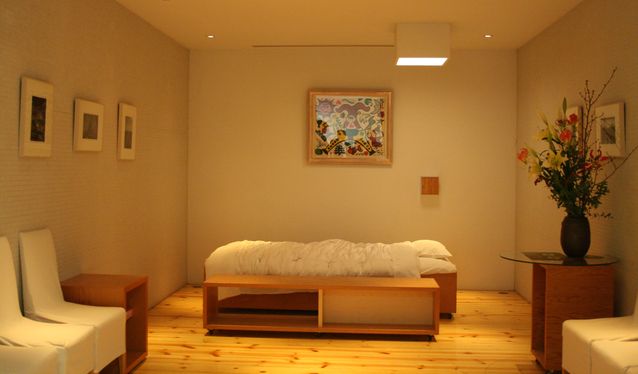 ³ëÀÎÀÇ·á ¼±Áø±¹ ´ä°Ô ÀÓÁ¾ ÈÄ¿¡µµ öÀúÇÑ È¯ÀÚÁ¸Áß Á¤½ÅÀ» ¹ßÈÖÇÑ´Ù. º´½Ç¿¡¼ ¼ûÀ» °ÅµÐ ȯÀÚ°¡ ¿µ¾È½Ç·Î ¿Å°ÜÁö±â Àü º¸È£ÀÚµé°ú ÀÛº°ÀÇ ½Ã°£À» ³ª´ ¼ö ÀÖ´Â °ø°£À» º°µµ·Î ¸¶·ÃÇØ ³ù´Ù. ÀÌ °÷¿¡¼´Â ¸¶Áö¸· °¡´Â ȯÀÚ¸¦ À§ÇØ »çÁø, ±×¸², À½¾Ç µî À¯Á·ÀÇ ¿äû´ë·Î ¼¼ÆÃµµ ÇØÁÖ°í ÀÖ´Ù.