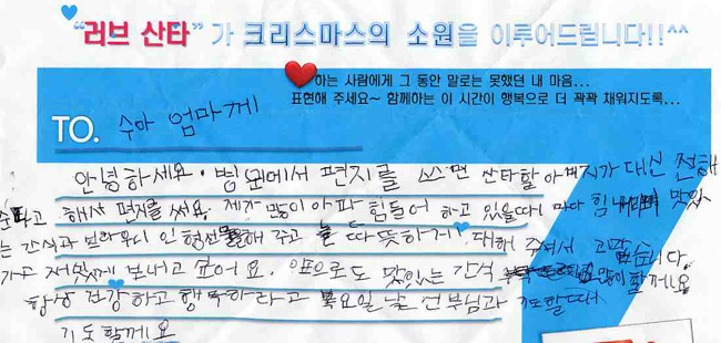 ¼Ò¾Æ¾Ï ȯ¾ÆµéÀÌ Å©¸®½º¸¶½º¸¦ ¾ÕµÎ°í ÆíÁö¿¡ ¾´ ¡®ÀÛÀº ¼Ò¸Á¡¯ÀÌ Çö½ÇÀÌ µÆ´Ù.