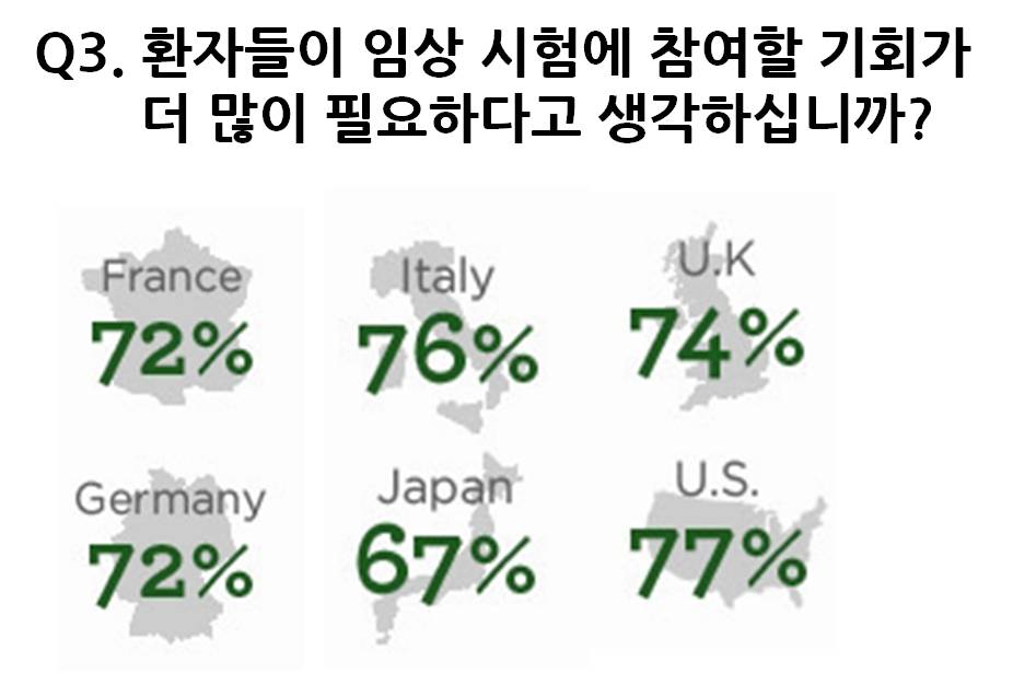 ÀÀ´äÀÚÀÇ 70% ÀÌ»óÀº ȯÀڵ鿡°Ô ÀÓ»ó½ÃÇè¿¡ Âü¿©ÇÒ ±âȸ°¡ Á» ´õ ¸¹ÀÌ ÇÊ¿äÇÏ´Ù°í ¹àÇûÀ¸¸ç, ÀÀ´äÀÚ 10¸í Áß ¾à 9¸íÀº ¾Ï ¿¬±¸ ¹× Ä¡·áÀÇ Çâ»óÀ» À§ÇØ ÀÇ·á ±â·ÏÀ» °øÀ¯Çϴµ¥ µ¿ÀÇÇß´Ù.