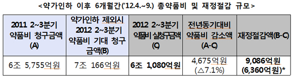 ¾à°¡ÀÎÇÏ ÈÄ 6°³¿ù°£, ÃÑ ¾àǰºñ´Â 6Á¶1080¾ï¿øÀ¸·Î Àü³âµ¿±â ´ëºñ 7.1%(4675¾ï¿ø) °¨¼ÒÇß´Ù.[Ç¥ÂüÁ¶]