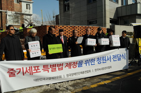 ÃÖ±Ù ´ëÇѹα¹°í¿±Á¦Àü¿ìȸ ¡¤ Çѱ¹Àå¾ÖÀδÜüÃÑ¿¬ÇÕȸ ¡¤ Çѱ¹³ì³»Àå°ü¸®Çùȸ µî ÃÑ 3°³ ´Üü´Â ¼¿ï Á¾·Î±¸ »ïû·Î ´ëÅë·ÉÁ÷ÀμöÀ§¿øÈ¸(ÀÌÈÄ ÀμöÀ§) ¾Õ¿¡¼ ¡®Áٱ⼼Æ÷ Ưº°¹ý Á¦Á¤ Ã˱¸ ÇÕµ¿ ¼º¸í¼¡¯¸¦ ³¶µ¶Çϰí, 13¸¸¸íÀÇ Ã»¿ø¼¸¦ ÀμöÀ§ °ü°èÀÚ¿¡°Ô Àü´ÞÇß´Ù.