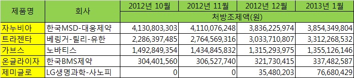 ´ç´¢º´Ä¡·á DPP-4 ¾ïÁ¦Á¦ °è¿ ½ÃÀå¿¡¼ ÃÖ»óÀ§±Ç¿¡ ¼ÓÇÑ ÀÚ´©ºñ¾Æ¿Í °¡ºê½º 󹿾×ÀÌ Á¤Ã¼ ¶Ç´Â Ç϶ô¼¼¸¦ º¸À̰í ÀÖ´Â °¡¿îµ¥ ÈĹßÁÖÀÚ Æ®¶óÁ¨Å¸¿Í Á¦¹Ì±Û·Î°¡ µÎ°¢À» ³ªÅ¸³»´Â ¸ð½ÀÀÌ´Ù.