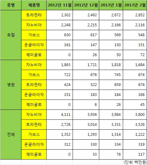 Æ®¶óÁ¨Å¸´Â º£¸µ°ÅÀΰÖÇÏÀÓ°ú ¸±¸®, À¯ÇѾçÇàÀÌ °øµ¿ÇÁ·Î¸ð¼ÇÇϰí ÀÖ´Â °¡¿îµ¥ À¯ÇѾçÇàÀÌ ´Üµ¶ ÆÇ¸Å¸¦ ¸Ã°í ÀÖ´Â ÀÇ¿ø±Þ ó¹æ ½ÃÀå¿¡¼ µ¶º¸Àû 1À§¸¦ ´Þ¸®°í Àֱ⠶§¹®ÀÌ´Ù. ·ÎÄÃÀ» Á¦¿ÜÇÑ º´¿ø±Þ ÀÌ»óÀº 3»ç°¡ ÇÔ²² Á¦Ç° ÆÇ¸Å¸¦ ´ã´çÇϰí ÀÖ´Ù.
