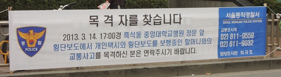 ½ÇÁ¦ 14ÀÏ¿¡´Â º´¿ø ¾Õ Ⱦ´Üº¸µµ¿¡¼ ±³Åë»ç°í°¡ ¹ß»ýÇß´Ù. ±æÀ» °Ç³Ê·Á´ø ÇҸӴϰ¡ °³ÀÎÅýÿ¡ ºÎµúÈù ±³Åë»ç°í·Î ÇöÀç µ¿ÀÛ°æÂû¼´Â ¸ñ°ÝÀÚ¸¦ ã°í ÀÖ´Ù. [»çÁø]