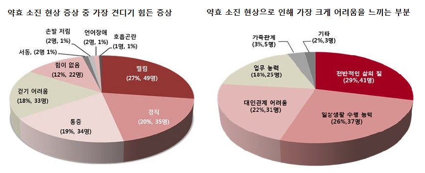 ÆÄŲ½¼º´ ȯÀÚµéÀÌ Ä¡·áÁ¦ È¿´ÉÀÌ ¶³¾îÁö¸é¼ °Þ°Ô µÇ´Â ¡®»îÀÇ Áú ÀúÇÏ¡¯ ºÎºÐ¿¡¼ °¡Àå °ßµð±â Èûµç Áõ»óÀº ¹«¾ùÀϱî.