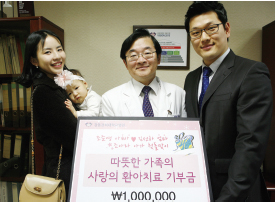 Áö³ÇØ ¼ö·ÃÀ» ¸¶Ä£ ±è¼±ÇÏ ÀÇ»ç´Â ¡°¾Æ¶ó°¡ ÇÑ »ìÀÌ µÉ ¶§±îÁö ¾ÆÇÁÁö ¾Ê°í °Ç°ÇÏ°Ô ÀÚ¶ó ³Ê¹« °¨»çÇÏ´Ù. º´¿ø¿¡¼ ÀÔ¿øÇϰí ÀÖ´Â ¾Æ¶ó ¶Ç·¡ÀÇ ¾ÆÀ̵éÀÌ ¼ÓÈ÷ ȸº¹µÇ±æ ¹Ù¶õ´Ù¡±¸ç ùµ¹ÀÇ ±â»Ý ¼Ó¿¡¼µµ ȯ¾ÆµéÀÇ ¾ÆÇÄÀ» ÇÔ²²Çß´Ù. ±âºÎ±Ý Àü´Þ½Ä¿¡ Âü¿©ÇÑ ¹Ú¹®¼ ¿øÀåÀº ¡°ÀþÀº ºÎºÎ°¡ ¶æ ±íÀº ÀÏ¿¡ ¸¶À½À» ½áÁà °¨»çÇÏ´Ù¡±¸ç ¡°º´¿ø Àü Á÷¿øµéÀÌ ÀÌ ¸¶À½À» ¹Þ¾Æ ȯÀÚ Ä¡·á¿¡ Á¤¼ºÀ» ´ÙÇÒ °Í¡±À̶ó°í ¾à¼ÓÇß´Ù.