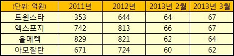 Áö³ 3¿ù °íÇ÷¾Ð Ä¡·áÁ¦ 󹿾×Àº Àü¿ù´ëºñ ¼ÒÆø »ó½ÂÇÑ °ÍÀ¸·Î ³ªÅ¸³µÀ¸³ª, Áö³ 2011³â°ú 2012³â ÀڷḦ ºÐ¼®ÇßÀ» ¶§ ARBÁ¦Á¦¸¦ Á¦¿Ü, 3°³ Á¦Á¦´Â 󹿾×ÀÌ ÁÙ¾úÀ¸¸ç Àü³â°ú ºñ±³ÇßÀ» ¶§ ARBÁ¦Á¦°¡ °¼¼¸¦ º¸¿´À½À» ¾Ë ¼ö ÀÖ¾ú´Ù.