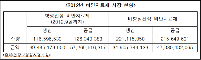 ÇâÁ¤½Å¼º ºñ¸¸Ä¡·áÁ¦¸¦ ½Ä¾àó¿¡¼ ±Ç°íÇÏ´Â ±âÁØÀ¸·Î Åõ¾àÇßÀ» °æ¿ì 120¸¸¸í ÀÌ»óÀÌ, ºñ¸¸Ä¡·áÁ¦ Àüü¸¦ ±âÁØÀ¸·Î ºÃÀ» ¶§ 340¸¸¸íÀÌ º¹¿ëÇÒ ¼ö ÀÖ´Â ¾çÀÌ´Ù.