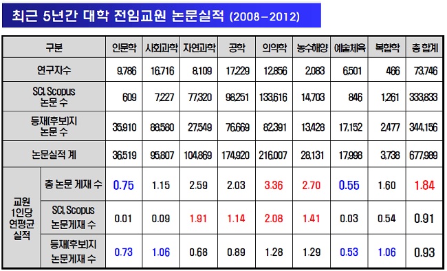 ±³¿ø 1ÀÎ ´ç ¿¬Æò±Õ ÃÑ ³í¹® °ÔÀç ¼ö´Â 3.36Æí, ÀÌ Áß SCI¤ýScopus°¡ 2.08Æí, µîÀç(Èĺ¸)Áö°¡ 1.28ÆíÀÎ ¼ÀÀÌ´Ù.