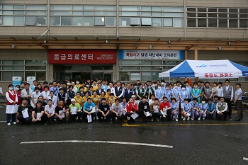 Áß¾Ó´ëÇб³º´¿øÀº 29ÀÏ ÀÀ±ÞÀÇ·á¼¾ÅÍ Àα٠±¸¿ª¿¡¼ 120¿© ¸íÀÇ ±³Á÷¿øÀÌ Âü¿©ÇÑ °¡¿îµ¥ Àç³ ´ëºñ ¸ðÀÇÈÆ·ÃÀ» ½Ç½ÃÇß´Ù.