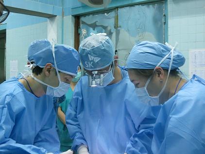 2ÀÏ ºóµò º´¿ø 1Ãþ ¼ö¼úÀå. ¹é ±³¼öÀÇ ¸»¿¡ À̰÷ º´¿ø ÀÇ»çÀΠŸÀ̾¾°¡ °í°³¸¦ ²ô´öÀδÙ. À̳» ¹é·Õ¹Î ±³¼ö°¡ ù ±¸¼ø±¸°³¿ ȯÀÚÀÇ ¼ö¼úÀ» Á÷Á¢ ÁøµÎÁöÈÖÇÑ´Ù. ÀÌ È¯ÀÚ´Â ÀÔ ÃµÀåÀÌ °¥¶óÁø 10´ë´Ù. ¹é ±³¼ö´Â Á¢ÇÕ ºÎÀ§¿¡ ¿À¸¥ÂÊ Çã¹÷Áö ¾ÈÂÊ¿¡¼ ¶¼³½ »ìÀ» À̽ÄÇß´Ù.
