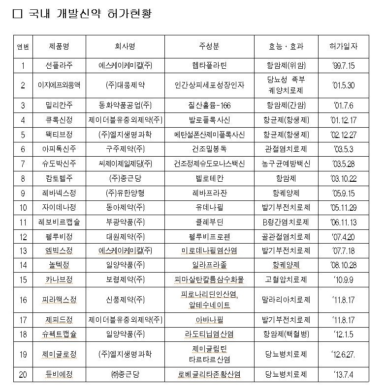 ÇÑÆí, Á¾±Ù´çÀº Áö³ 2000³âºÎÅÍ ¾à 250¾ï¿øÀÇ ¿¬±¸ºñ¸¦ ÅõÀÚÇØ À̹ø ½Å¾àÀ» °³¹ßÇßÀ¸¸ç, µàºñ¿¡Á¤ÀÇ Çã°¡·Î ÇöÀç±îÁö °³¹ßµÈ ±¹»ê ½Å¾àÀº ÃÑ 20°³°¡ µÆ´Ù.