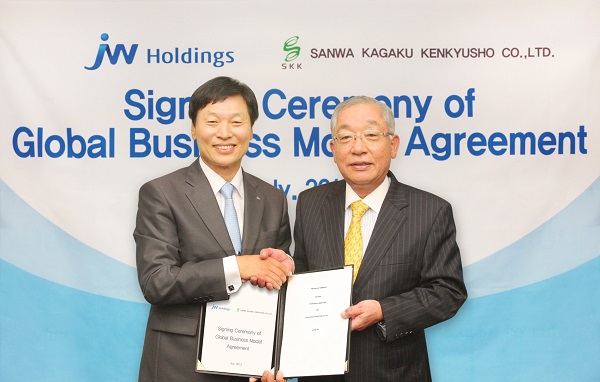 JWȦµù½º(´ëÇ¥ À̰æÇÏ)´Â ÀϺ» SUZUKEN GROUP »êÇÏ Á¦¾à»ç SKK(Sanwa Kagaku Kenkyusho, ´ëÇ¥ Ä«Áî¿À ¾ß¸¶¸ðÅä)¿Í 995¾ï¿ø ±Ô¸ðÀÇ ¡®±Û·Î¹ú ÁßÀå±â °øµ¿°³¹ß Çù·Â °è¾à¡¯À» ü°áÇß´Ù°í 8ÀÏ ¹àÇû´Ù. SKK»ç´Â ¼¼ÀÌºÒ Á¤, ½ºÀÌ´Ï Á¤, ¾Æ°¡¸ÞÀÌÆ®Á©¸® µî ´ç´¢º´ ¿µ¿ª¿¡ °Á¡À» °¡Áø Áß°ß Á¦¾à»ç´Ù.