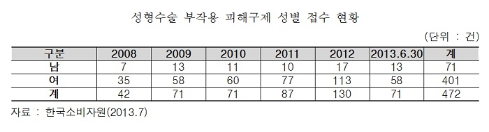 ±¹È¸ º¸°Çº¹ÁöÀ§¿øÈ¸ ¼Ò¼Ó »õ´©¸®´ç ±èÇö¼÷ ÀÇ¿øÀº Çѱ¹¼ÒºñÀÚ¿øÀ¸·ÎºÎÅÍ Á¦Ãâ¹ÞÀº ¡®¼ºÇü¼ö¼ú ºÎÀÛ¿ë ÇÇÇØ±¸Á¦ Á¢¼öÇöȲ¡¯ÀڷḦ ºÐ¼®ÇÑ °á°ú, 2008³â 42°Ç¿¡¼ ÀÛ³â 130°ÇÀ¸·Î 5³â µ¿¾È 3¹è ÀÌ»ó ±ÞÁõÇÑ °ÍÀ¸·Î µå·¯³µ´Ù.