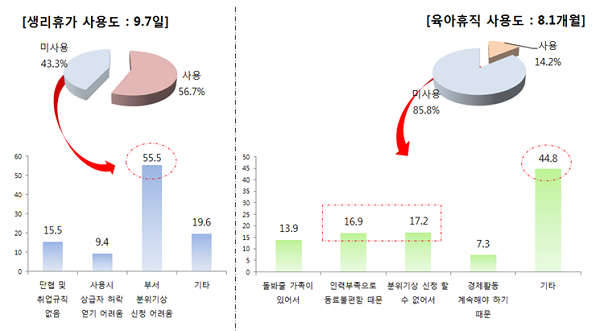 ¶ÇÇÑ »ý¸®ÈÞ°¡ »ç¿ëºñÀ²Àº Àüü 56.7%·Î ³ªÅ¸³µÀ¸¸ç, »ý¸®ÈÞ°¡ ¹Ì»ç¿ëÀÚ Áß 55.5%°¡ ¡®ºÎ¼ ºÐÀ§±â»ó ½ÅûÀÌ ¾î·Æ´Ù¡¯´Â ÀÌÀ¯¸¦ µé¾ú´Ù.