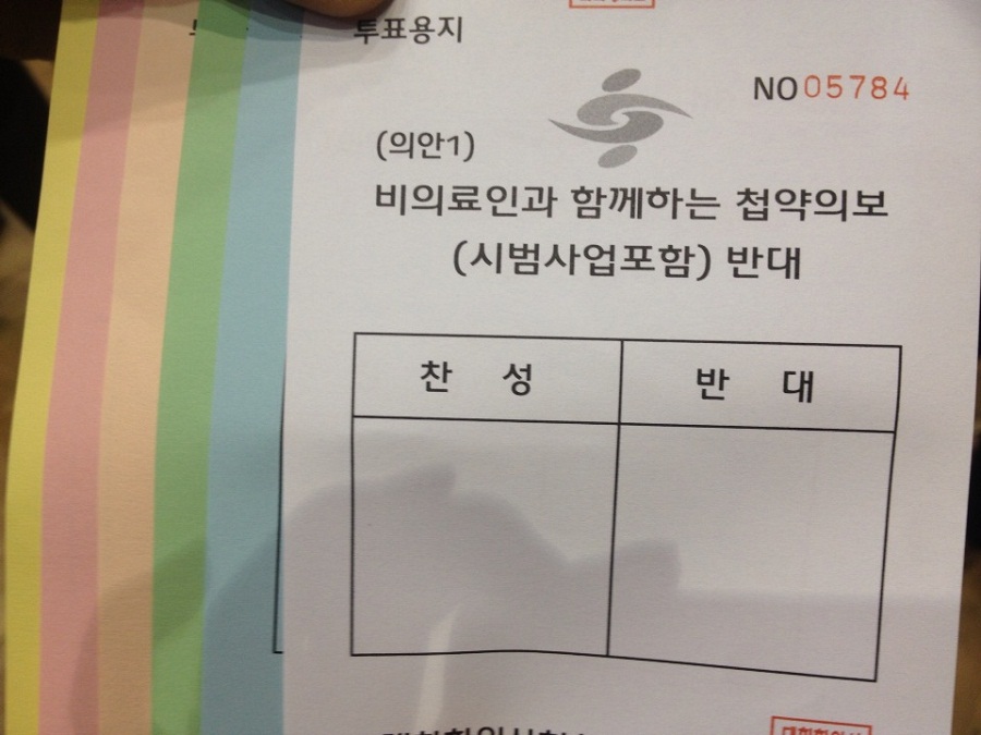 ÀÇ·á°è »ç»ó óÀ½À¸·Î Àüȸ¿øÀÌ ¸ð¿© ÅõÇ¥ÇÏ´Â ´ëÇÑÇÑÀÇ»çÇùȸ »ç¿øÃÑȸ¿¡¼ ¡®ºñÀÇ·áÀÎÀÌ ÇÔ²²Çϴ ø¾àÀǺ¸ ¹Ý´ë¡¯ ¾È°ÇÀÌ ¾ÐµµÀû Ç¥Â÷·Î °¡°áµÆ´Ù. ÀÌ´Â ±×°£ ±èÇ桂 ÁýÇàºÎ°¡ ÁÖÀåÇß´ø ¹Ù´Ù.