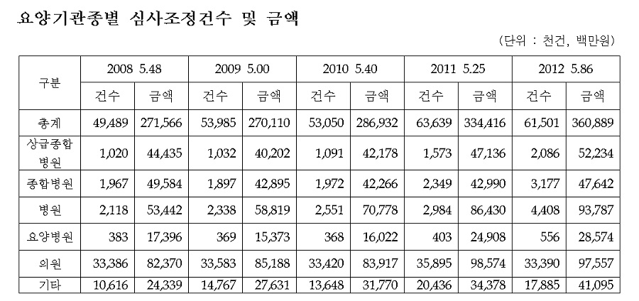 ÀÌ´Â º¸°Çº¹ÁöÀ§¿øÈ¸¿¡¼ Ȱµ¿ ÁßÀÎ ±è¹ÌÈñ ÀÇ¿øÀÌ ÃÖ±Ù ½ÉÆò¿øÀ¸·ÎºÎÅÍ Á¦Ãâ¹ÞÀº ¡®¿¬µµº°(2008~2012) ÀÇ·á±â°ü ±Þ¿©Ã»±¸¿¡ ÀÇÇÑ ½ÉÆò¿ø ½É»ç ÈÄ »è°¨ °Ç¼ö ¹× ¾×¼ö¡¯¿¡ µû¸¥´Ù.[Ç¥]