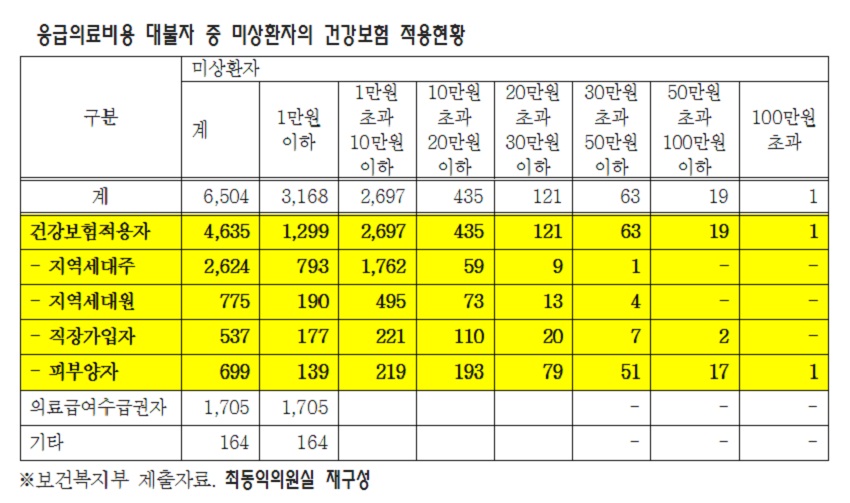 ´õ¿í ½É°¢ÇÑ °ÍÀº ¹Ì»óȯÀÚ 70% ÀÌ»óÀÌ ¼ÒµæÀ̳ª Àç»êÀÌ ÀÖ¾î »óȯ´É·ÂÀÌ ÀÖÀ½¿¡µµ ÀÀ±ÞÀÇ·áºñ¿ëÀ» ´ëÁö±Þ±ÝÀ» ³»Áö ¾Ê°í ÀÖ´Ù´Â Á¡ÀÌ´Ù.
