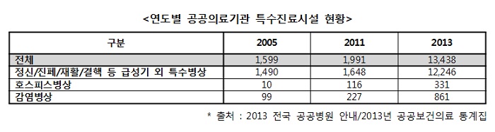 ¼öÀÍÀÌ ³ªÁö ¾Ê¾Æ ¹Î°£º´¿ø¿¡¼ ¿î¿µÇϱ⠲¨·ÁÇϴ ȣ½ºÇǽº, °Ý¸®½Ç µî Ư¼öÁø·á½Ã¼³µµ °ø°øº´¿ø¿¡¼´Â ´Ù¼ö ¿î¿µµÇ°í ÀÖÀ½À» ¾Ë ¼ö ÀÖ´Ù.[Ç¥]