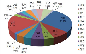 °¢ ½Ã․µµº°·Î´Â ¼¿ï 2.02¸í, ±¤ÁÖ1.78¸í, ´ëÀü 1.72¸í, ºÎ»ê 1.67¸í, ´ë±¸ 1.64¸í µîÀÇ ¼øÀ̾ú´Ù.