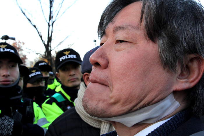 ¡ã°üÄ¡ÀǷḦ ÇØ°áÄ¡ ¸øÇÑ Ã¥ÀÓÀ» ¹¯±â À§ÇØ »õ´©¸®´ç»ç¸¦ ÇâÇØ Çö¼ö¸· ½ÃÀ§¸¦ °¨ÇàÁßÀÎ ³ëȯ±Ô ȸÀå°ú ȸ¿øµé. |
