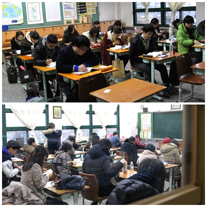 ¡ã2014 Àǻ籹½Ã ÀÀ½ÃÀÚµéÀÌ ½ÃÇè ½ÃÀÛ Á÷Àü ½ÃÇèÀå¿¡¼ ¸¶Áö¸· ¸¶¹«¸® °øºÎ ¹× ½ÃÇè Áغñ¸¦ Çϰí ÀÖ´Ù. ½ÃÇèÀå ³»¿¡´Â ÇÕ°ÝÀ» ÇâÇÑ ¼öÇè»ýµéÀÇ ºñÀå°¨ÀÌ ´À²¸Áø´Ù |