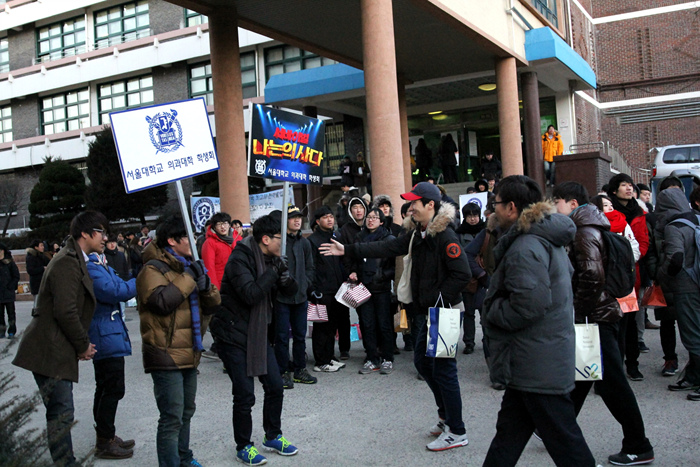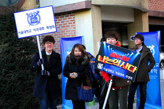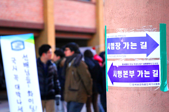 9ÀÏ 2014³âµµ Á¦78ȸ ÀÇ»ç ±¹°¡½ÃÇèÀÌ ¼¿ï, ºÎ»ê, ´ë±¸, ±¤ÁÖ, ´ëÀü, ÀüÁÖ ÃÑ 6°³ Áö¿ª¿¡¼ ÁøÇàµÆ´Ù. À̳¯ ¼¿ï ±¤ÀåÁßÇб³ ½ÃÇèÀå¿¡´Â ÃÖÀú±â¿Â ¿µÇÏ 12.9µµÀÇ ÇÑÆÄ°¡ ¸ô¾ÆÄ¡¸ç µ¿À屺ÀÌ ¸ÍÀ§¸¦ ¶³Ä¡´Â ¼Ó¿¡¼µµ °¢ Àǰú´ëÇÐ ¼öÇè»ýµéÀ» ÀÀ¿øÇÏ·Á´Â ¼±ÈĹè¿Í Çб³ °ü°èÀÚ, ÇкθðµéÀÌ ¿¶í ÀÀ¿øÀ» ÆîÃÆ´Ù. ÇØ ¶ß±â Àü »õº®³èºÎÅÍ ±â¿îÂù ÀÀ¿øÀüÀÌ ÆîÃÄÁø ¼¿ï ±¤ÀåÁßÇб³ ±¹½Ã ÇöÀåÀ» µ¥Àϸ®¸Þµð°¡ »çÁøÀ¸·Î ´ã¾Ò´Ù.