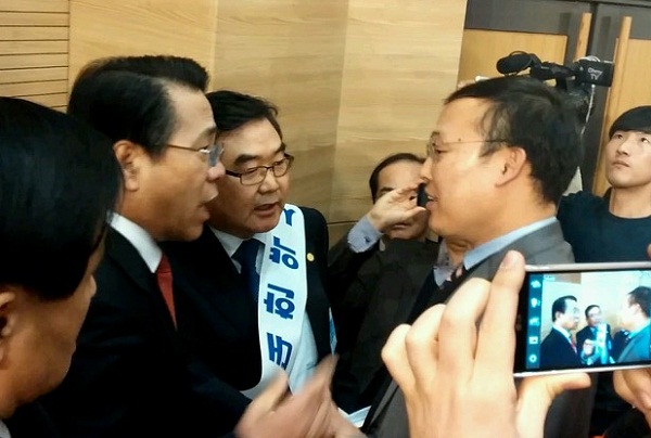 ÁÖº¯¿¡ ÀÖ´ø »ç¶÷µéÀÌ Á¶ ȸÀå°ú ÀÌ °úÀåÀ» ¶¼¾î³»¸ç »çŸ¦ ÁøÁ¤½ÃÄ×À¸³ª Á¶ ȸÀåÀº "6¸¸ ¾à»ç°¡ ÁöÄѺ¸°í ÀÖ´Ù. Àß ¾ËÁöµµ ¸øÇÏ¸é¼ °ø°³ ¼®»ó¿¡¼ ÇԺηΠ¾ê±âÇÏÁö ¸»¶ó. »çÀü ÇùÀÇÇß´Ù¸é ±Ù°Å¸¦ ´ë¶ó"¸ç °Åµì ¹ß¾ðÀÇ ÁøÀ§¸¦ ¿ä±¸Çß´Ù.