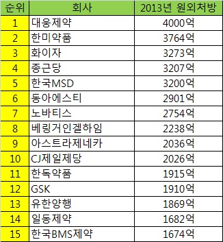 ´ë¿õÁ¦¾àÀÌ Áö³ÇØ ¿ø¿Üó¹æ¾× 1À§¸¦ ¼ö¼ºÇß´Ù. Çѹ̾àǰÀº ±× µÚ¸¦ ¹Ù¦ ÂÑÀ¸¸ç ´ë¿õÁ¦¾àÀÇ ¾Æ¼ºÀ» À§ÇùÇϰí ÀÖ´Ù. Àüü 10À§±îÁö ±¹³»»ç 5°÷°ú ¿ÜÀÚ»ç 5°÷ÀÌ ±â·ÏµÈ °¡¿îµ¥ ±¹³»»çµéÀÌ ´ëºÎºÐ »óÀ§±ÇÀ» Â÷ÁöÇß´Ù.
