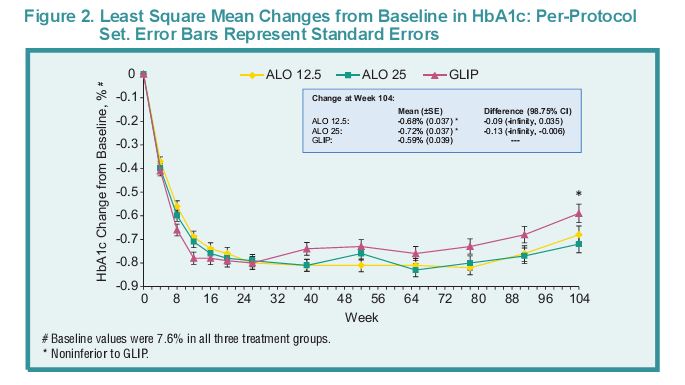 ¿¬±¸´Â ¸ÞÆ®Æ÷¹Î°ú º´¿ë¿ä¹ýÀ¸·Î »ç¿ë ½Ã ±Û¸®ÇÇÀÚÀÌµå ´ëºñ ¾Ë·Î±Û¸³Æ¾ÀÇ È¿´É ¹× ¾ÈÀü¼º¿¡ ´ëÇÑ Áö¼Ó¼ºÀ» ºñ±³ Æò°¡Çϱâ À§ÇØ ¼öÇàµÆ´Ù. ±× °á°ú, º¹¿ë 104ÁÖÂ÷¿¡ ¾Ë·Î±Û¸³Æ¾ 25mgÀº ±Û¸®ÇÇÀÚÀ̵å Ç÷´ç°ÇÏ Ãø¸é¿¡¼ Åë°èÀûÀ¸·Î ¿ì¿ùÇÔÀ» ³ªÅ¸³Â´Ù. [ÀÚ·á ù»]