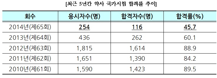 Á¦65ȸ ¾à»ç ±¹°¡½ÃÇè¿¡¼´Â Àüü ÀÀ½ÃÀÚ 254¸í °¡¿îµ¥ 116¸í¸¸ÀÌ ÇÕ°ÝÇØ 45.7%ÀÇ ÇÕ°Ý·üÀ» ±â·ÏÇß´Ù. Áö³ÇØ ÇÕ°Ý·ü 60.1%º¸´Ù ´Ù¼Ò Å« ÆøÀ¸·Î Ç϶ôÇß´Ù.